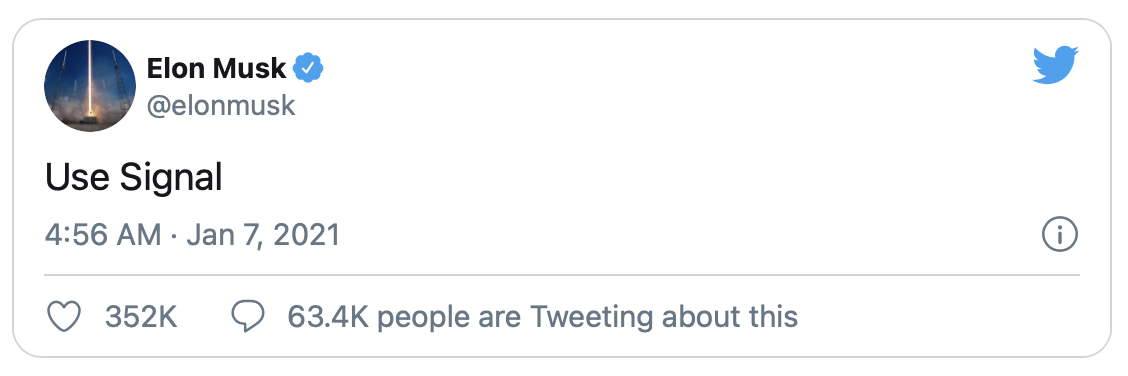 There’s just one issue. Signal Advance is a micro-cap biotech company, and Musk was referring to Signal, which is a messaging platform/app that not only is a private company but a nonprofit. As in, this company is never going to generate earnings because it’s not supposed to… because it’s a nonprofit.