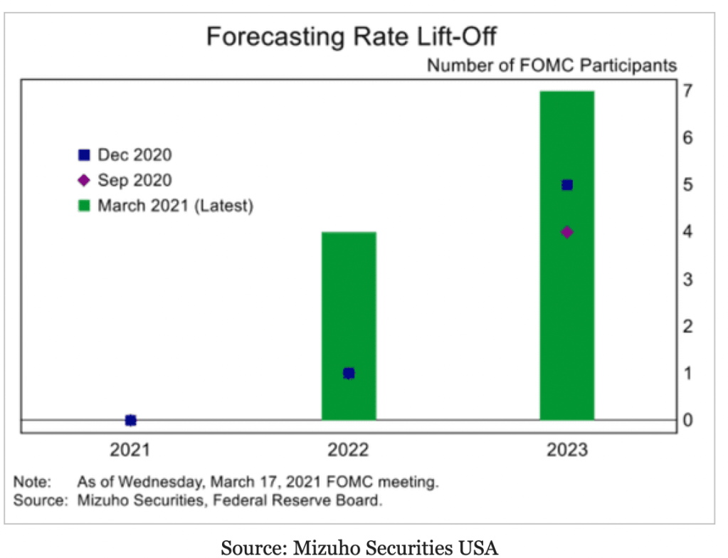 Furthermore, the Fed will not raise rates while conducting QE (all that bond buying they are doing to keep rates low). If so, the central bank would probably need to announce tapering as soon as late this year to gradually reduce securities purchases. Given the Fed officials’ statements, that seems highly unlikely.