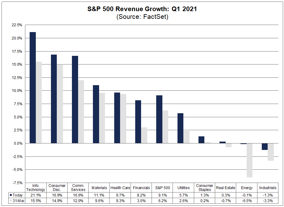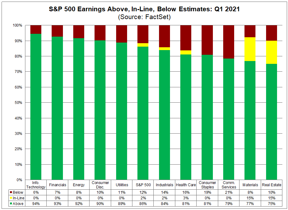 This could be the best earnings season I’ve ever seen. Check out this chart from FactSet as of April 30th (60% of S&P 500 companies reported by then):
