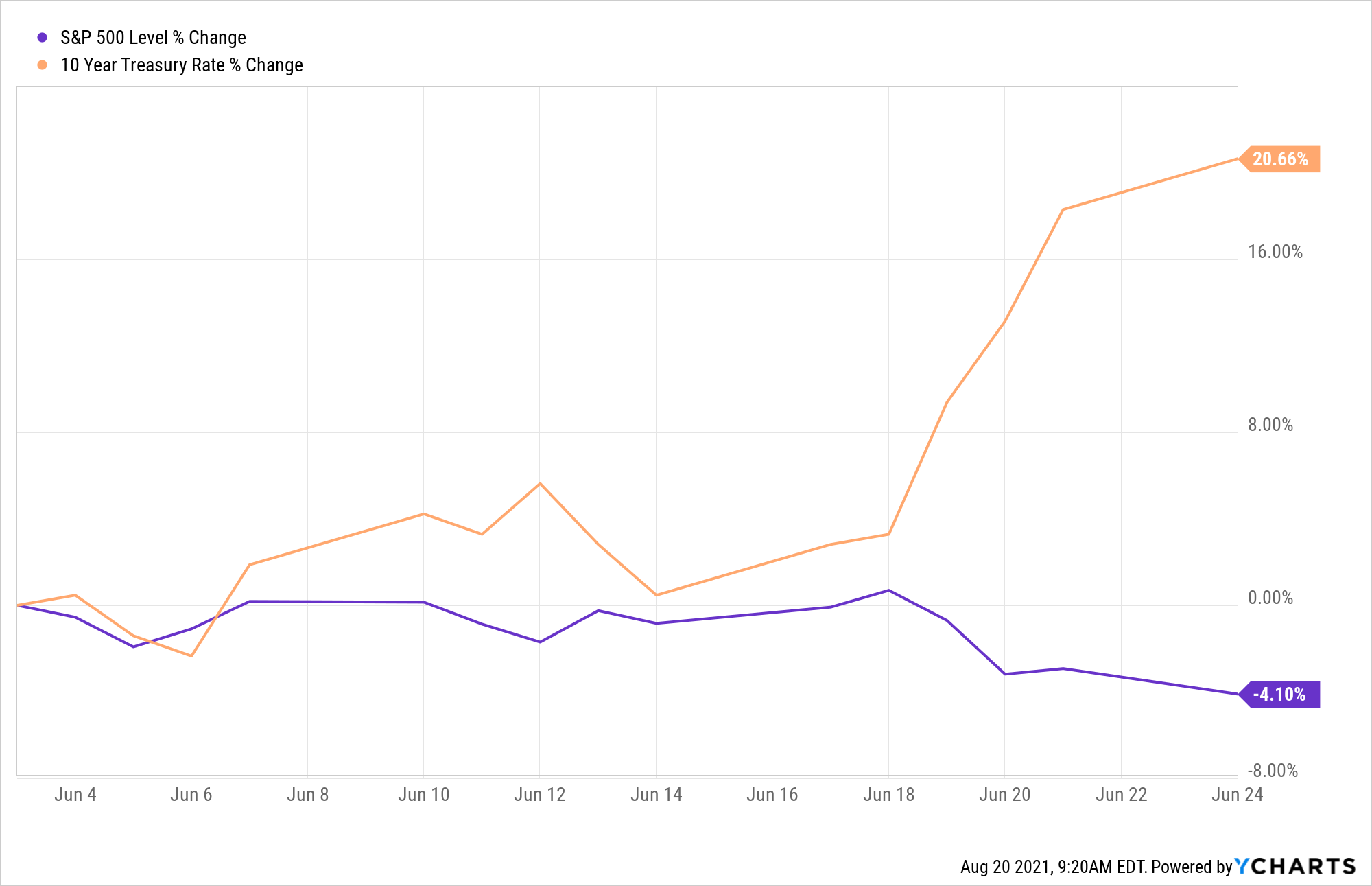Furthermore, the response this week was nothing compared to what happened when Ben Bernanke ignited the “Taper Tantrum” back in 2013. He caused the stock market to fall over 4% and the 10-year yield to spike over 20% (rising yields = falling bond prices = the bond market was hammered) in a matter of days.