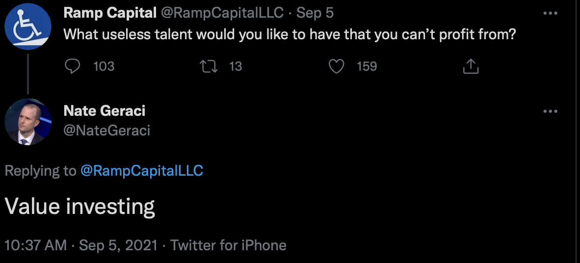 Well, this tweet from Ramp Capital was sent to me earlier in the week, and it’s top tier: