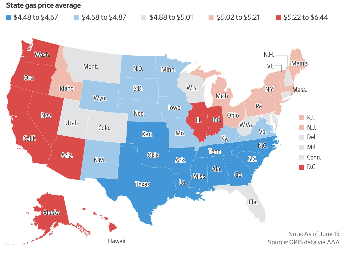 Here’s a cool chart from the WSJ comparing gas prices across the country. I was in the People’s Republic of California last week, and damn. Seeing $8.00 in San Francisco was not as funny as I expected. I almost, almost felt bad for all those zipped hoodies. Almost.