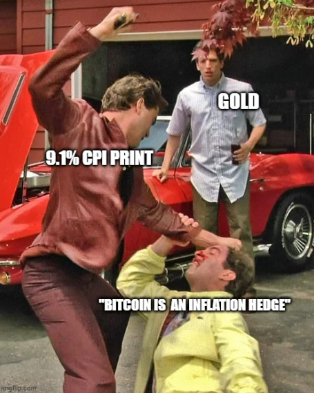 Haven’t ripped on gold in a while, but if you’re wondering how well it’s done as an inflation hedge, it’s down 7% this year. Also that digital gold (bitcoin) is down around 56%. That’s why this is the meme of the week.