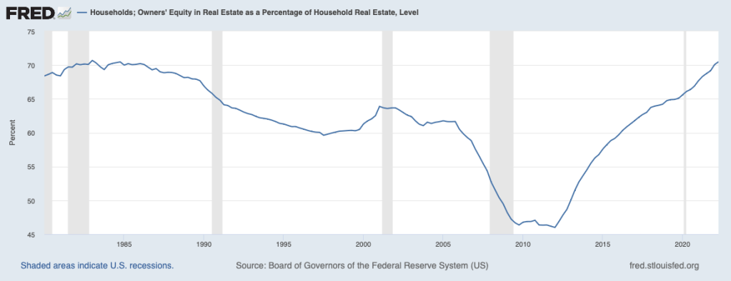 Third, home equity is at levels unseen since the 1980s. Assuming banks continue to offer HELOCs and consumers tap them, more dry powder could come.