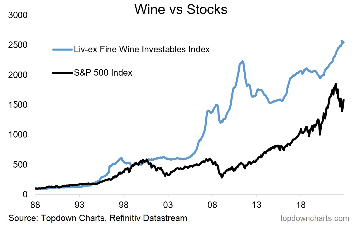 The second is wine. The Liv-ex 1000 benchmark recorded a 13.6% increase through mid-December and a 44.6% rise over five years.